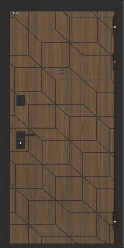 Черная матовая: Броненакладкая, сувальдные накладки со шторкой, ручка, ночник, цилиндр ключ-вертушка, глазок по центру или сбоку